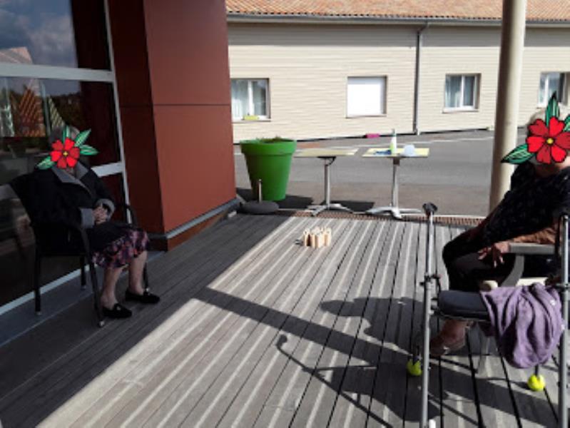 Cet après midi, profitant du soleil sur la terrasse, les résidents ont fait une partie de Molkky, bien-sur en respectant les gestes barrières et les distances. Un moment très convivial et très joyeux qui a donné du baume au coeur en cette période de confinement.