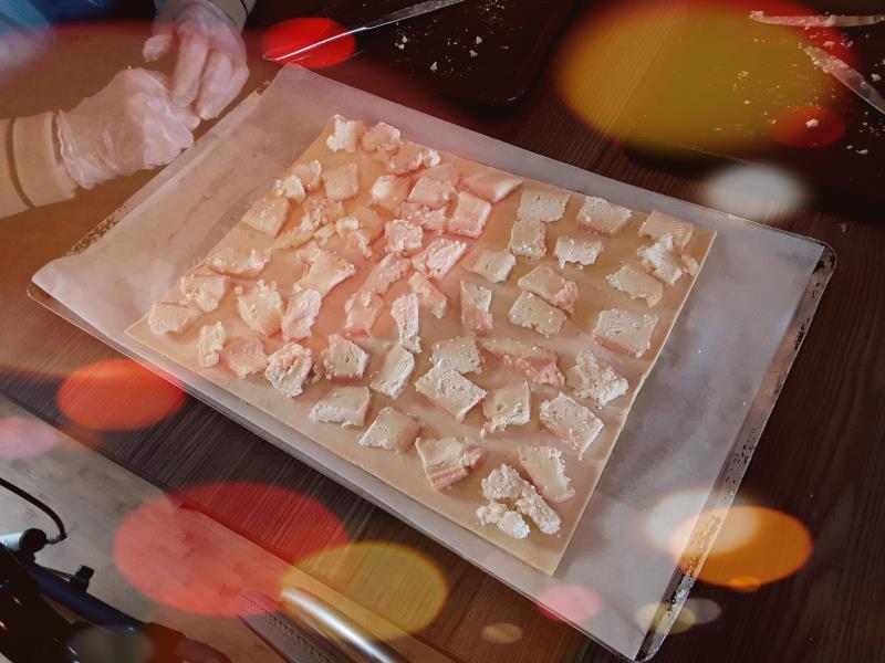La journée sur notre thème "la Fête des voisins et le Nord" arrive enfin. On prépare une fin de journée festive en cuisinant des tartes pour l'apéritif, pas n'importe lesquelles , le Nord oblige ce sera des tartes aux Maroilles !!!
