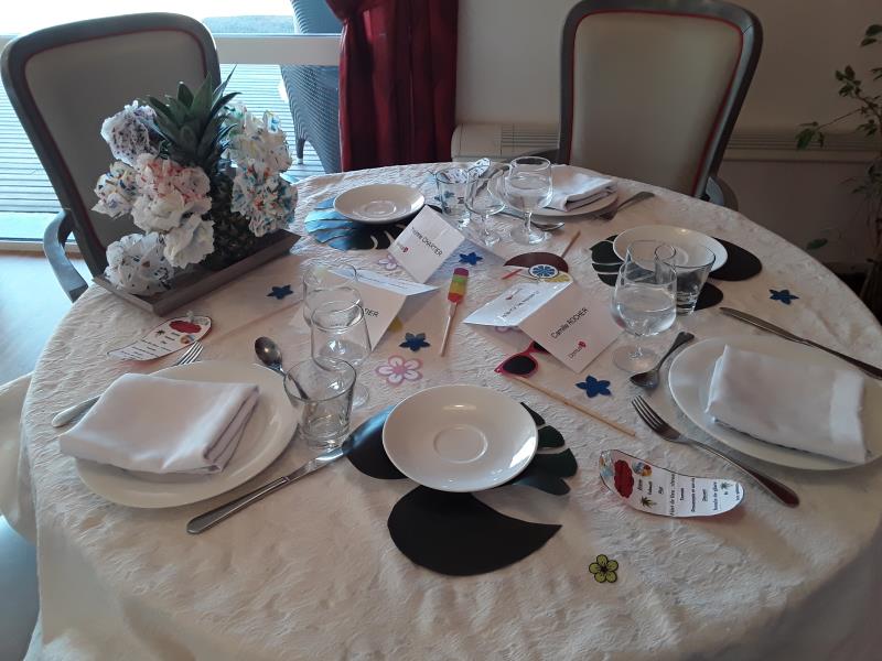 Ce vendredi nous avons voyagé à travers la journée à thème "les vacances, le sud...". Pour cela, nous avions préparé une décoration de table originale et un menu typique du sud, puis une séance photo des plus rigolote. Enfin, notre journée s'est achevée par la fabrication de cocktail maison avec le Chef. La boisson a été baptisée "cocktail LAREMY"... Une journée pleine de bonne humeur où tout le monde a participé avec plaisir !